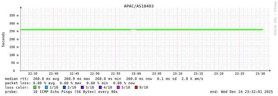 40. Median RTT 0.260 seconds